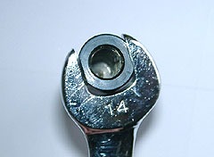 ● スパナで咥える加工部分の余裕を大き目にしてあるため、 ティッシュや布を挟めば締め付けの際表面に傷がつくのを防げます。 |