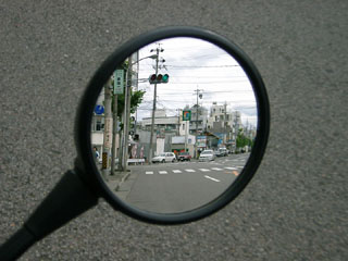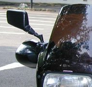 | ここではR1100シリーズ用純正ミラーと アダプターを介して装着したタナックス社より発売されている ナポレオン・クロス2ミラーとを比較しています。 (このミラーの実売価格は左右で4000円前後)視界の変化は歴然です。 |