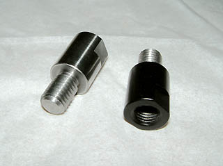 ● ワイヤークラッチ車用右側は逆ネジを採用しており、車体にそのまま取り付けが可能です。 ● 雌ネジの径は10ミリ、深さは17ミリ(油圧クラッチ車用は28ミリです)を確保し、 原付用などに使われているネジ径8mmのミラーと逆ネジを使用しているヤマハ用を除く ほとんどの10ミリネジの市販ミラーに対応します。 (ピッチは二輪のミラーに一般的に使用されている1.25ミリです) ● ミラーの締め付けを確実にするためのアルミ製ワッシャー(外径15ミリ、内径10ミリ)が付属しています。 ● 取り付けは一切加工不要の完全ボルトオンです。 |